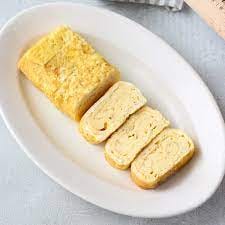 Tamagoyaki is formed a thin layer rolled upon a thin layer, then again and again. The rectagular shape is on account of the squarish pan used in it's preparation. Of course, you can use a round pan, but its cool to be square.